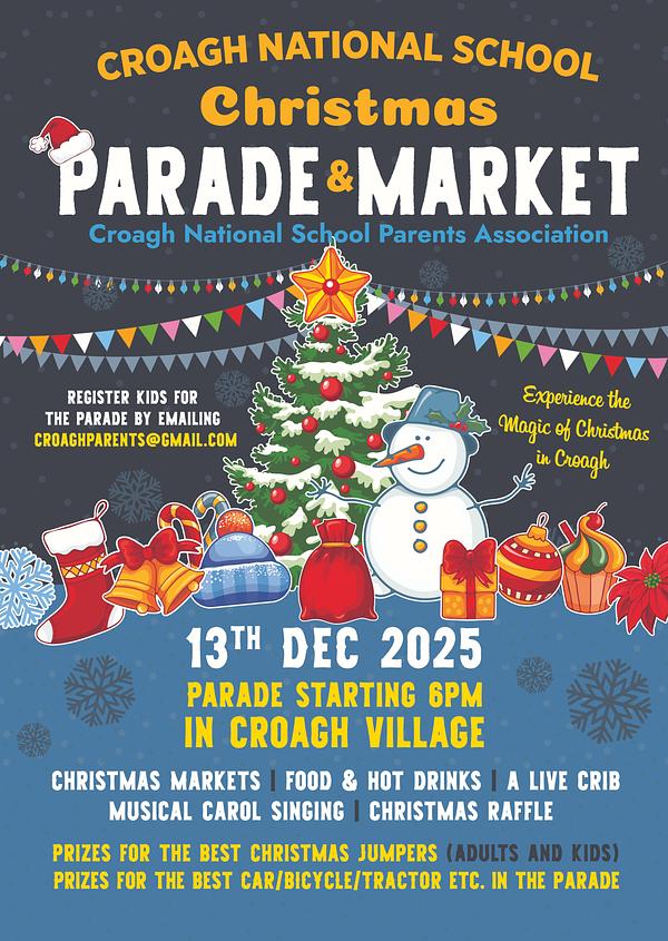 Our local primary school in Croagh are having their annual Christmas Parade and Market on the 13th of December at 6pm.