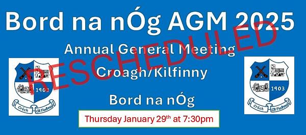 The AGM has been rescheduled to take place this Thursday January 29th at 7:30pm in the GAA Hall Croagh village.