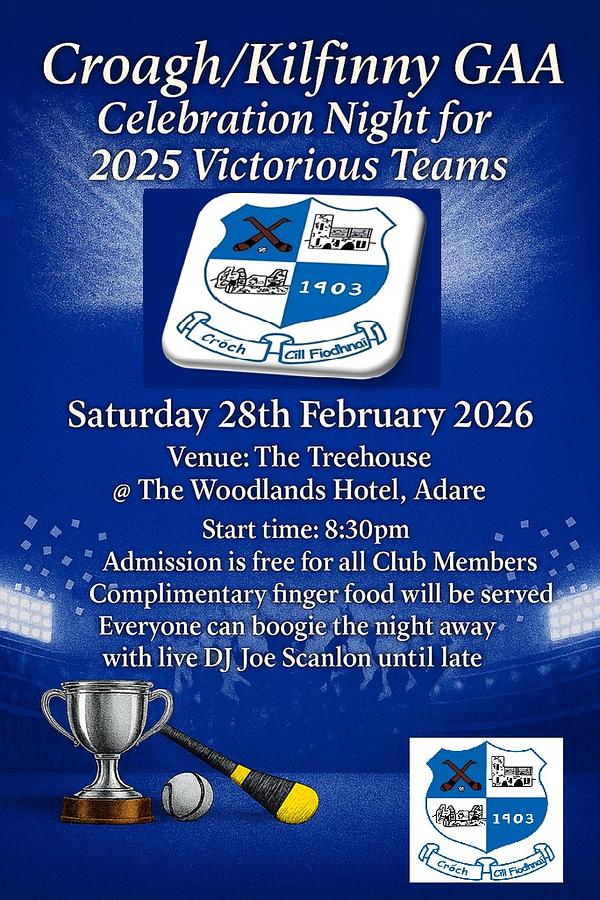 This Saturday evening, the place to be is the Treehouse at the Woodlands House Hotel in Adare as we come together to honour our incredible adult teams and their management for a truly memorable 2025 season!.
